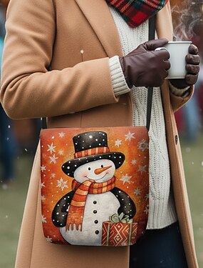 женская рождественская сумка через плечо со снеговиком — принт со снеговиком и снежинками для праздничного шопинга, рождественских вечеринок и зимних прогулок