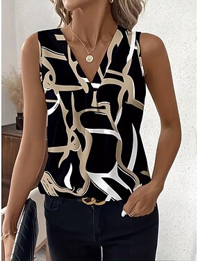 Жен. Безрукавка Графика Геометрический принт Абстракция Элегантный стиль Винтаж тропический Без рукавов V-образный вырез Обычные топы Повседневные Черный Лето Весна