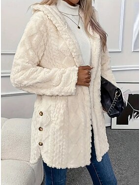 Жен. Куртка из шерпа Повседневная куртка Удобный Дышащий Карман Пуговицы На каждый день Полотняное плетение Отпуск Для улицы Повседневные На каждый день Открытый перед Обычная Капюшон Стандартный