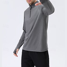 Муж. Однотонный Футболка для бега Компрессионная футболка Весна Осень Застегнуться Длинный рукав Быстровысыхающий Сжатие видеоизображений Влагоотводящие