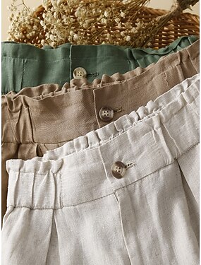 Женские шорты из хлопка и льна Летние шорты Пляжные шорты Объемные шорты Для отпуска Базовые Повседневные До колен Высокая талия Однотонные С карманами Широкие штанины Эластичная талия Комфортные