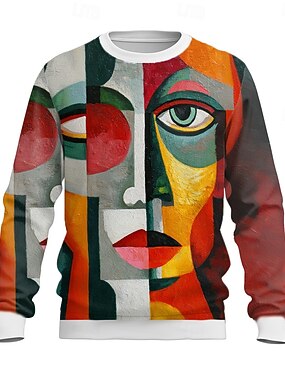 Муж. Человеческое лицо Толстовка На каждый день Длинный рукав Вырез под горло Отпуск Для вечеринок Подарок Лиловый Оранжевый Crewneck 3D Все сезоны Дизайнер S M L XL XXL XXXL