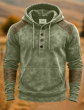 Муж. Толстовка Толстовка с капюшоном и пуловером Натяни Толстовка на пуговицах Охотничья толстовка Серый Воротник-стойка Полотняное плетение Пэчворк Цветовые блоки
