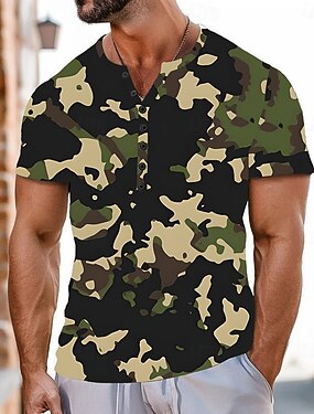 Муж. Камуфляж Футболка Рубашка Хенли С короткими рукавами Спорт Мода Оригинальный рисунок Повседневные на открытом воздухе Для улицы Лето Травянисто-зелёный Розовый Хенли Футболка Хенли
