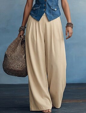 Жен. Штаны Повседневные брюки Летние штаны Пляжные штаны Отпуск Мода На каждый день Полная длина Завышенная Сплошной цвет Полотняное плетение Кулиска Широкие Эластичный пояс Комфорт Мягкий Дышащий