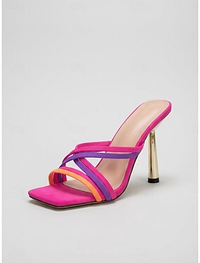 Женские неоновые босоножки на шпильке с цветовыми блоками — сексуальные мюли с открытым носком на высоком каблуке для тропического отдыха и летних вечерних вечеринок. &гламур у бассейна