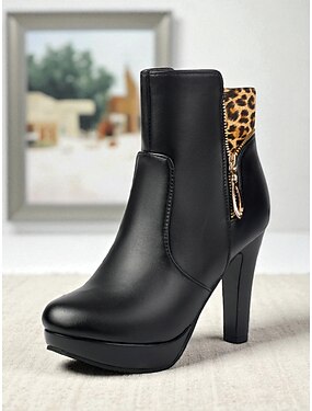 Женские черные ботильоны на высоком каблуке с леопардовым принтом на манжете и боковой молнией, элегантные ботильоны на платформе для вечеринок и ночных клубов &повседневные шикарные наряды