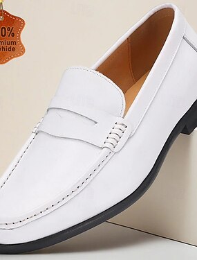 Мужские белые кожаные лоферы – высококачественные туфли без шнурков из коровьей кожи, отличающиеся простой элегантностью и подходящие как для повседневных, так и для торжественных случаев.