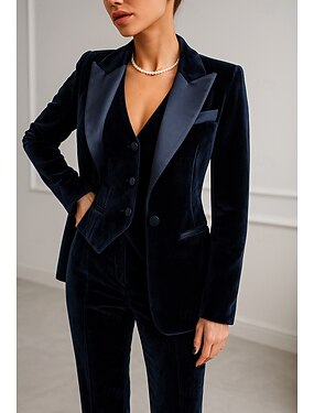 Жен. Спортивная куртка Комплект Костюмы-тройки Официальные Свадебный гость Бархат Элегантный стиль Простой Длинный рукав В пол Пик отворот Однобортный крой