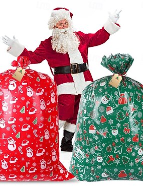 Упаковка очень больших рождественских подарочных пакетов 56x36 дюймов, 3 шт., большие подарочные пакеты для подарков, прочная пластиковая упаковка, рождественский мешок для огромных подарков