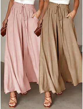Жен. Широкие Чино Брюки Отпуск Винтаж Уличный стиль Полная длина Средняя талия Сплошной цвет Полотняное плетение Эластичная талия С принтом удобный На открытом воздухе Удобный Неэластичная