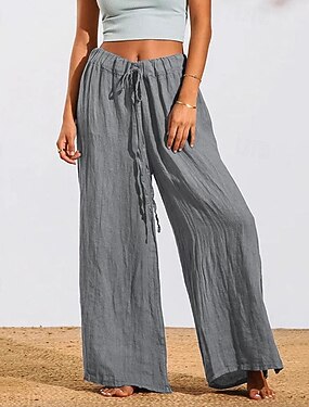 Жен. Широкие Брюки Уличный стиль На каждый день Длиные Завышенная Полотняное плетение Эластичный шнурок Высокий вырез Воздухопроницаемость Мягкий Слабоэластичная Отпуск Для улицы На каждый день