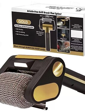 Беспроводной перезаряжаемый электрический очиститель для гриля с роликами из нержавеющей стали, скорость вращения 350 об/мин, светодиодная подсветка, можно мыть в посудомоечной машине, подходит для