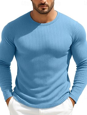 Муж. Футболка Трикотажная футболка в рубчик Рубашка с длинным рукавом Длинный рукав Вырез под горло Весна Осень Все сезоны Полотняное плетение Текстура Пит Стрип Мода Оригинальный рисунок Классический