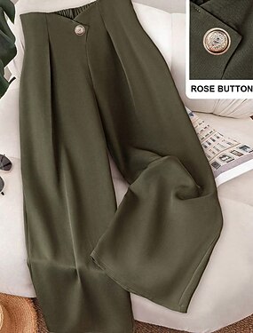 Жен. Широкие Чино На каждый день Полная длина Средняя талия Полотняное плетение Плиссировка Широкие удобный Воздухопроницаемость На каждый день Синий Черный Розовый Светло-Зеленый Весна Осень
