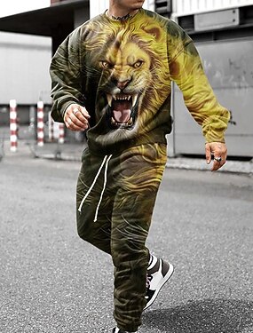Муж. Спортивный костюм Комплект толстовки Желтый Темно-серый Коричневый Черный Капюшон Графика Животное 2 предм С принтом Для занятий спортом Повседневные Спорт 3D печать / Осень / Весна