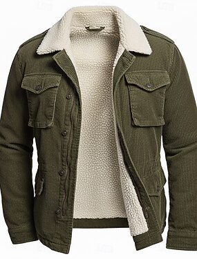 Муж. Вельветовый пиджак Флисовая жилетка Ветровка Рабочая куртка Повседневные На каждый день Ветровка Пэчворк Карман Зима Весна & осень Сплошной цвет Винтаж Мода Рубашечный воротник Обычная