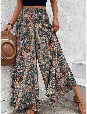 Жен. Широкие Брюки в стиле бохо Чино Отпуск Уличный стиль Классический Полная длина Нормальная Графика Огурцы Эластичная талия Рисунок удобный Комфорт Дышащий Неэластичная Слабоэластичная