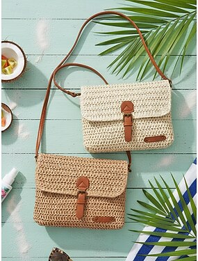 женская сумка через плечо из плетеной соломы - летний клатч в стиле бохо с регулируемым плечевым ремнем для пляжного, курортного и повседневного ношения
