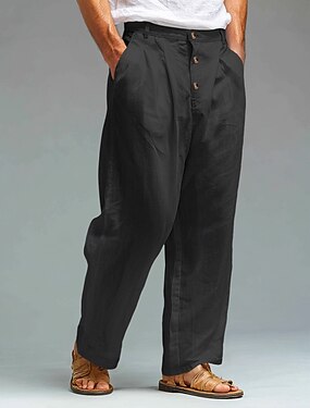 Муж. Льняные брюки Штаны Летние штаны Пляжные штаны Передний карман Прямая нога Полотняное плетение Комфорт Дышащий Длина колена Повседневные Праздники Отпуск Мода Черный Белый