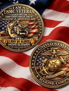 Памятная монета ветерана морской пехоты США, медаль морской пехоты «Semper Fidelis», патриотический подарок с эмблемой бульдога, американским флагом, честью, службой и жертвой, коллекционный предмет