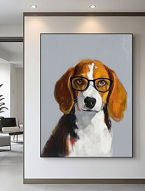 Нарисованная вручную картина маслом в стиле бигля в золотом стиле с изображением собаки, постер на холсте, декор для стены с изображением животного, арт-декор для спальни, домашнего интерьера, подарок