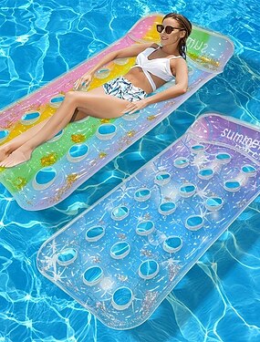 Надувной плавательный матрас с градиентной расцветкой и блестками, утолщенный ПВХ-шезлонг, плавающее кресло, идеально подходит для вечеринок у бассейна, летнего пляжа и водных развлечений.
