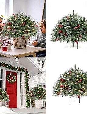 Рождественская елка с подсветкой, уличные украшения, 24 дюйма, с гирляндами, предварительно освещенные кусты для кашпо с дистанционным управлением, рождественский наполнитель для урны, крыльцо, двор,