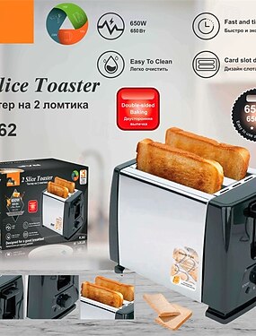 тостер на 2 ломтика, 650 Вт, двухсторонний тостер для выпечки, для хлеба/булочек/тостов, для домашнего использования, евровилка 220 В, машина для приготовления завтрака