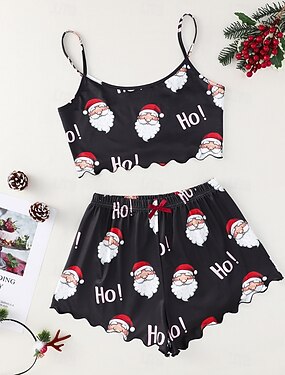 Рождественская женская пижама, домашняя одежда, пижамный комплект, пижамные шорты, мода, простая повседневная, с рисунком Санта-Клауса, шорты для дома, кровати, без рукавов, красный, черный, белый,