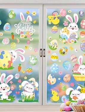 2 листа пасхальных наклеек на окна и стены, пасхальные яйца и кролики, статические украшения для гостиной, окон и праздничных сцен.