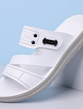 Мужские белые сандалии-шлепанцы с открытым носком, повседневные тапочки с регулируемым ремешком, удобная летняя обувь для пляжного отдыха, курорта и бассейна, путешествий, дома, отдыха на природе и повседневного стиля.