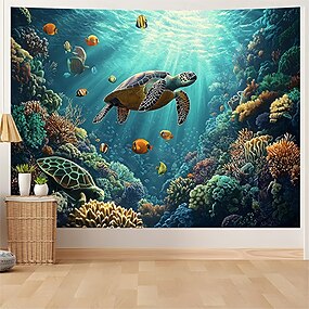 Гобелен с изображением морской черепахи, подводного кораллового рифа, настенное панно с морскими обитателями и природными пейзажами для спальни, ванной комнаты, гостиной и домашнего декора.