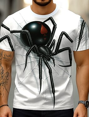 Муж. SPIDER 3D Смешной Футболка С короткими рукавами Футболка 3D печать Вырез под горло Рубашка преувеличены Оригинальный рисунок Для вечеринок Праздники Белый Лето Весна Одежда S M L XL XXL XXXL
