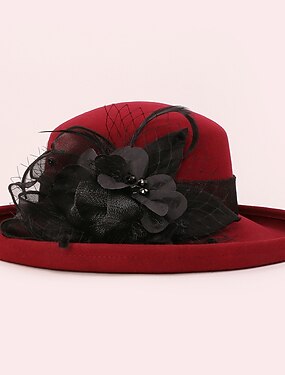 шляпы 100% шерстяная шляпа-котелок / шляпа-клош шляпа-ведро цилиндр элегантный головной убор для чаепития свадьба с кружевными лентами головной убор