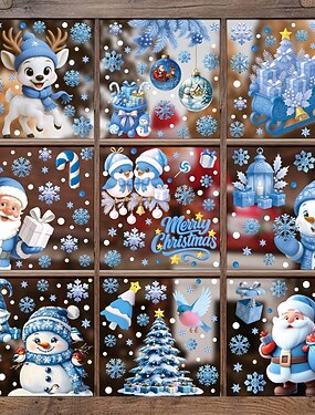 9 листов рождественских наклеек на окна, декоративных наклеек, креативный мультяшный Санта-Клаус, колокольчики, снежинки &снеговики, статическое электричество, новый дом для отдыха &декор магазина
