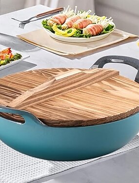 чугунная кастрюля, прочная домашняя кастрюля для супа, универсальная кухонная техника с деревянной крышкой, индукционная варочная панель для дома