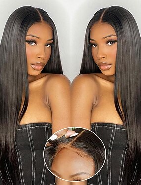 Натуральные человеческие волосы, парик на кружевной основе 5*5, прямые волосы, плотность 150%, длина 22-30 дюймов, для темнокожих женщин.