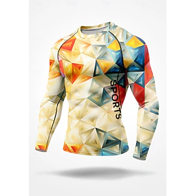 Муж. Компрессионная футболка Футболка для бега 3D печать Длинный рукав Основной слой Геометрический принт Быстровысыхающий Сжатие видеоизображений Для тренировки Power Flex Влагоотводящие