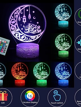 рамадан ид огни 3d мубарак исламская церковь 7 изменение цвета пульт дистанционного управления ночной свет декор мусульманская атмосфера лампа для спальни гостиная ид аль-фитр вечеринка свет друзья