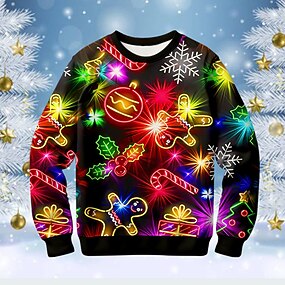 Новогодняя тематика Мальчики 3D Пряничные человечки Толстовка Pullover Длинный рукав 3D печать Осень Зима Мода Уличный стиль Круто Полиэстер Дети 3-12 лет на открытом воздухе Повседневные Стандартный
