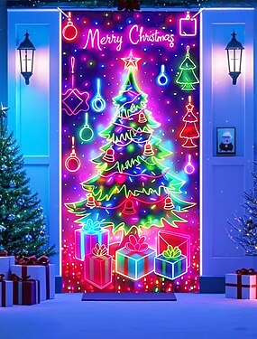 Рождественское покрытие двери с подсветкой, светящаяся праздничная занавеска с изображением праздничной елки, веселый рождественский дизайн, декор в стиле зимней сказки для дома, вечеринки, входа и