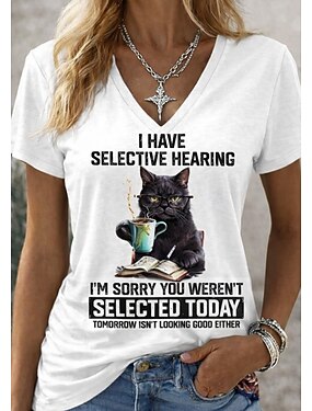 женская футболка с забавными юмористическими цитатами, 3D-принтом, графическим изображением животных, буквами, повседневная, с коротким рукавом, V-образным вырезом, стандартного размера, для