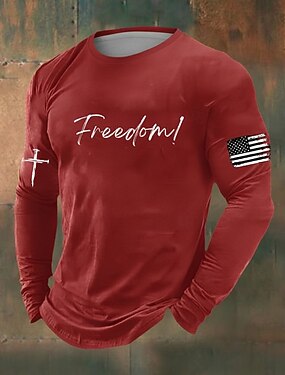 4 июля 2026 года 250-й день памяти Мужская футболка с 3D-принтом круглый вырез длинный рукав повседневная одежда