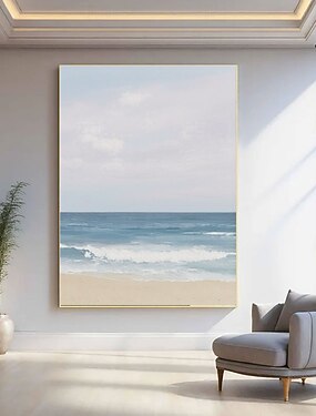 Оригинальная картина маслом на морском пляже, нарисованная вручную, настенное искусство с изображением спокойной береговой линии, волн, прибрежной спокойной пляжной сцены, художественное произведение