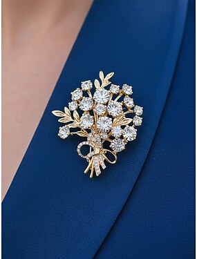 Женская брошь из сплава с имитацией бриллианта — элегантный цветочный дизайн в золоте и серебре, идеально подходит для свадеб и особых случаев.