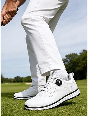 Мужские туфли для гольфа с регулируемой системой затяжки Boa – высококачественная искусственная кожа, стильный белый дизайн для гольфа и занятий спортом на открытом воздухе.