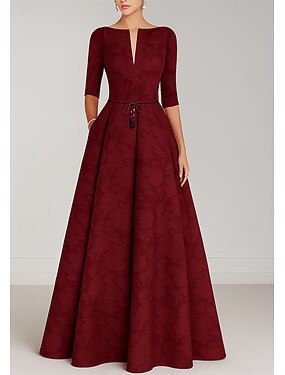 Футляр В пол Вечернее платье Платье-футляр Рукав 3/4 Совок шеи Винтаж Для вечеринки Свадебный гость Кружева Эластичная ткань Платье для матери невесты с Один цвет