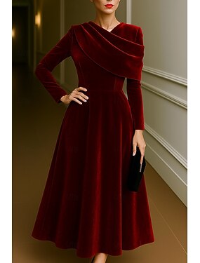 А-силуэт В пол Вечернее платье С пышной юбкой Торжественное платье Элегантный стиль Длинный рукав Воротник-стойка Официальные Свадьба Бархат с Плиссировка