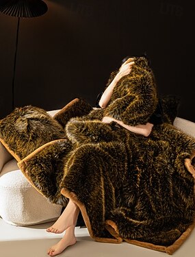 Искусственный мех енота - Ультратолстый расшелевый плед для зимы уютное покрывало для кровати и дивана